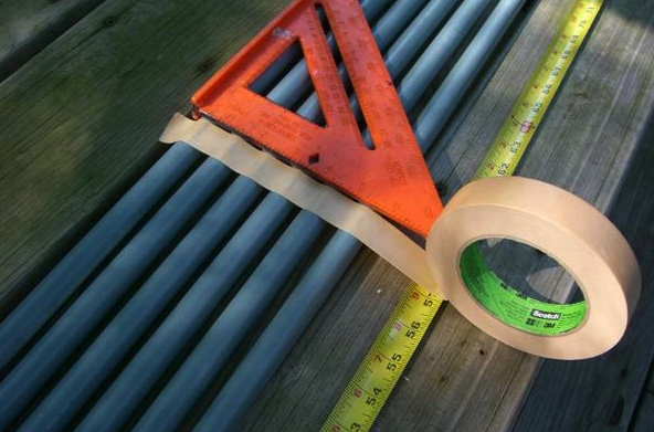After they are dry, measure and mark the spreader arms using the lengths below. A good way to do this is to lay the six thickest size spreader sections side by side and measure them for the marks shown. Do the same for the six medium thickness spreader sections and the six thinnest sections as well. Use a felt tip marker for this; tape might pull the paint off.